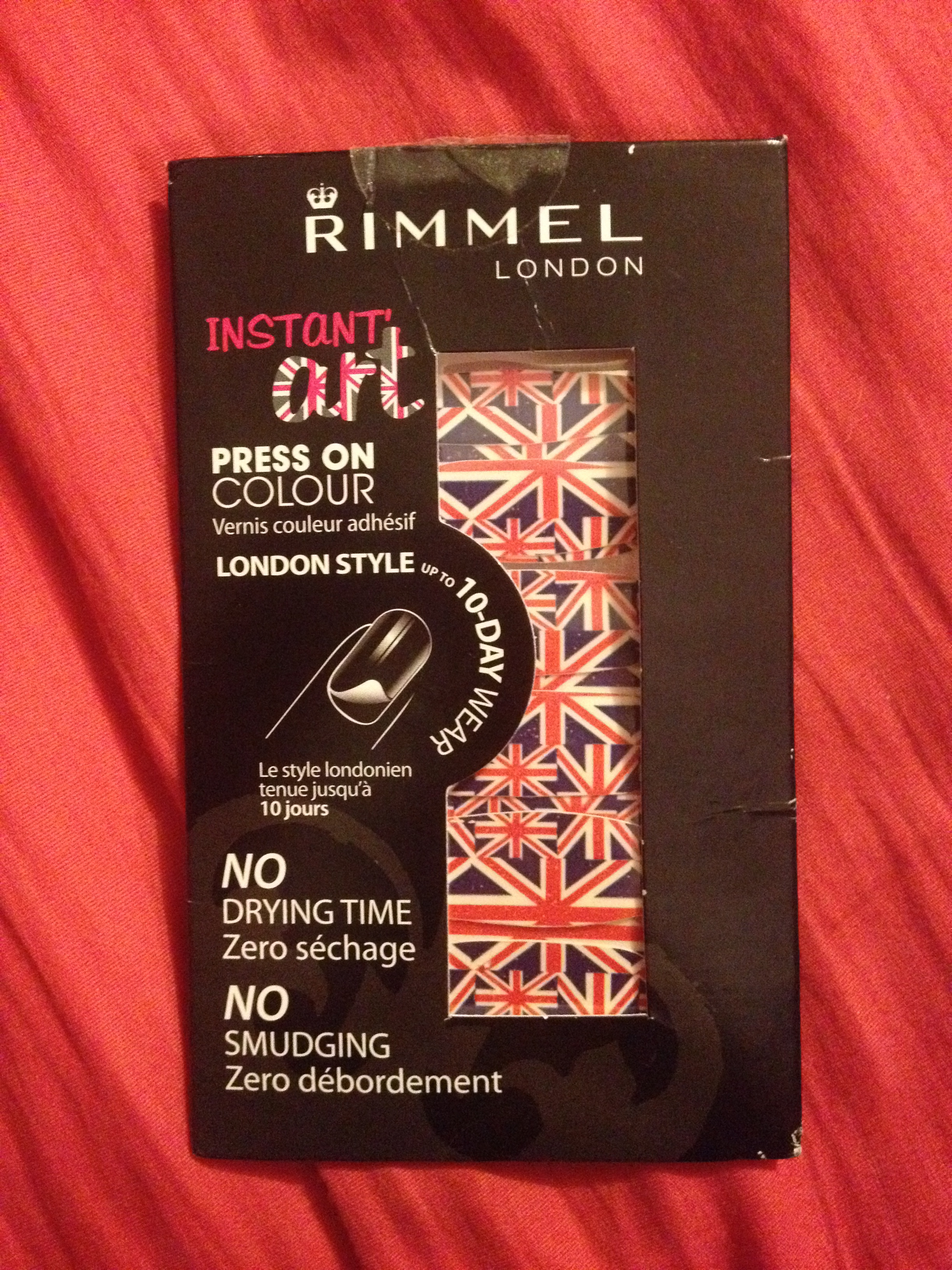 I’ve had this Manicure Monday planned for months, ever since Editor-in-Chief Kristine sent me Rimmel London’s Instant Art Press On Color nail stickers with a British flag pattern. I knew I had to save them to make a special manicure dedicated to the London Olympics. I’ve actually been holding onto them since April. Clearly, that was a bad idea because when I sat down to start my mani, I realized that the nail stickers were dried out. If I bent them, they cracked in half. And they didn’t stick. I had to brainstorm a new idea for my London-inspired mani. Read on to learn how I brought life back into my dried out nail stickers!