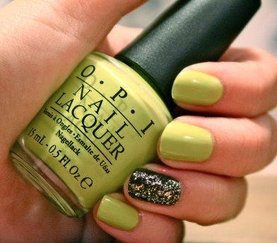 One of my favorite colors in the collection is Did It On ‘Em. It’s a bright neon yellow-green that I’ve really never seen before in a nail polish, and definitely not in a high-end polish. OPI is one of my favorite polish brands, so seeing such fun colors come from them made me really happy. Did It On ‘Em is so bright that it really needs to be the star of the show. If Did It On ‘Em isn’t your nail art, it should be your whole nail – don’t cover it up! Since these colors go so well together, though, adding an accent nail (with any of these colors!) gives a fun pop to any mani.