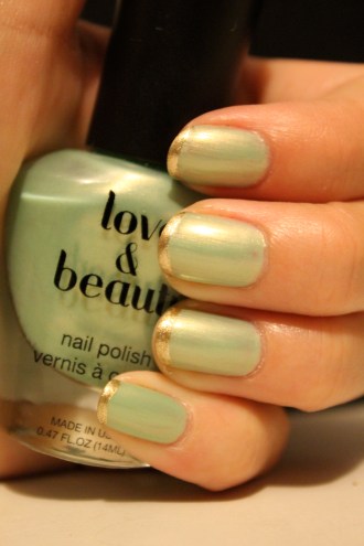 I used Love & Beauty by Forever 21‘s Mint Nail Polish as my base color.  It’s a beautiful teal color with a slight golden shimmer to it.  Two coats will be sufficient, but a third might make this color pop even more.  Keep the coats thin because the more you put on, the longer it will take to dry.