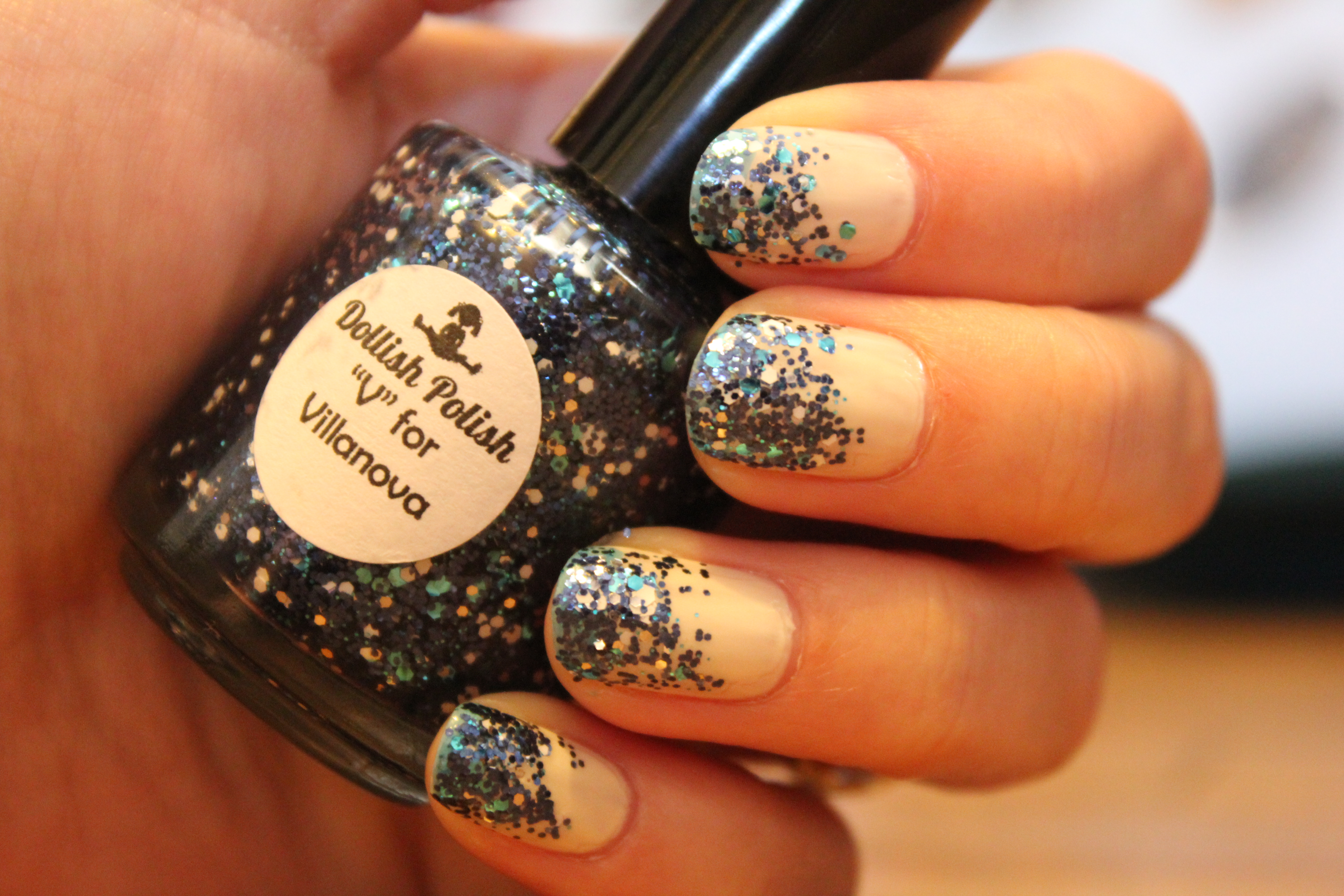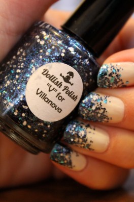 For my graduation from Villanova University this May, my two sisters got me the best graduation present – personalized nail polish.  Thanks to Dollish Polish, a homemade nail polish vendor, they had two polishes made for me that no one else in the world has – “‘V’ for Villanova” and “Nova Nation,” two phrases that would mean a lot to any Villanova grad. I wanted to create a manicure as unique as the polishes, and I really think I achieved that.  I got so many compliments from this manicure, and I couldn’t have been happier with the way it turned out.  Let’s see how I did it!