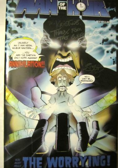 I met artist Jesus Marquez at a comic event: check out my autographed copy of Man Of The Hour! Let’s just say Man Of The Hour was $2 well spent!
