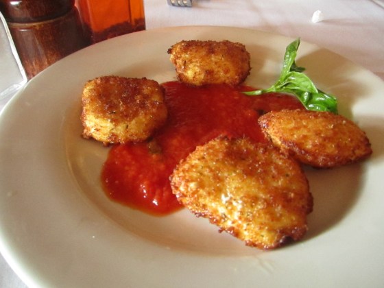 Appetizer: Mozzarella Fritta: mozzarella cheese breaded and sauteed with pomodoro sauce