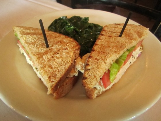 Entree: Tuscan Turkey Club Sandwich with a side of spinach