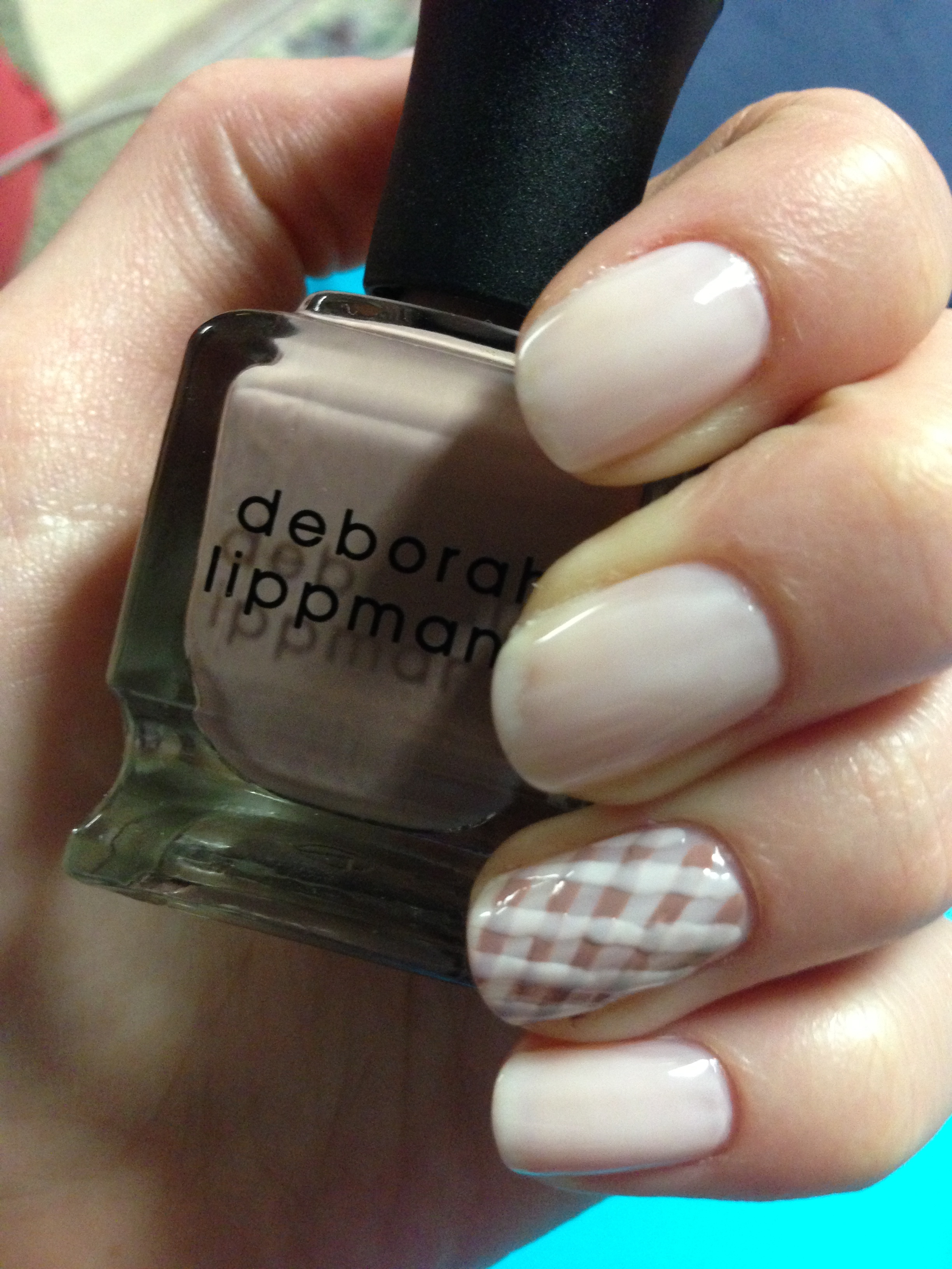 I really think that muted, neutral tones look best with this manicure. Bold colors could make it look like a plaid shirt or tablecloth – or it might look awesome. But I like the neutral.