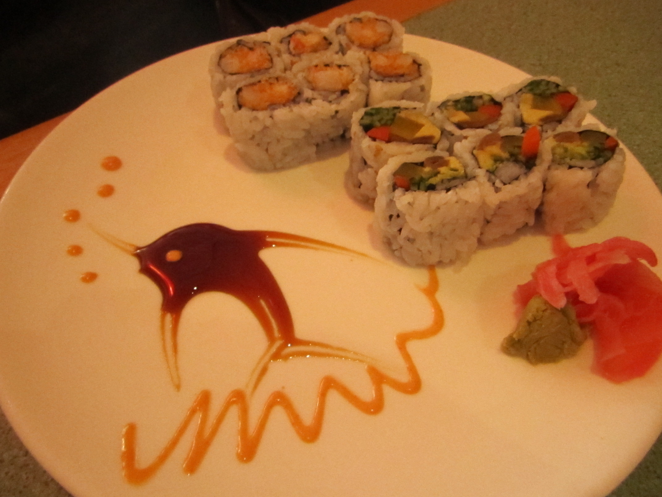 Dolphin and shrimp sauce drawings are great, but they’d be useless if the sushi wasn’t impeccable. Luckily, the presentation does not disappoint. The rolls are fresh and tasty, and you have quite a menu of options to pick from. Two rolls are included in the lunch special, which offers plenty food to keep you full until dinner!