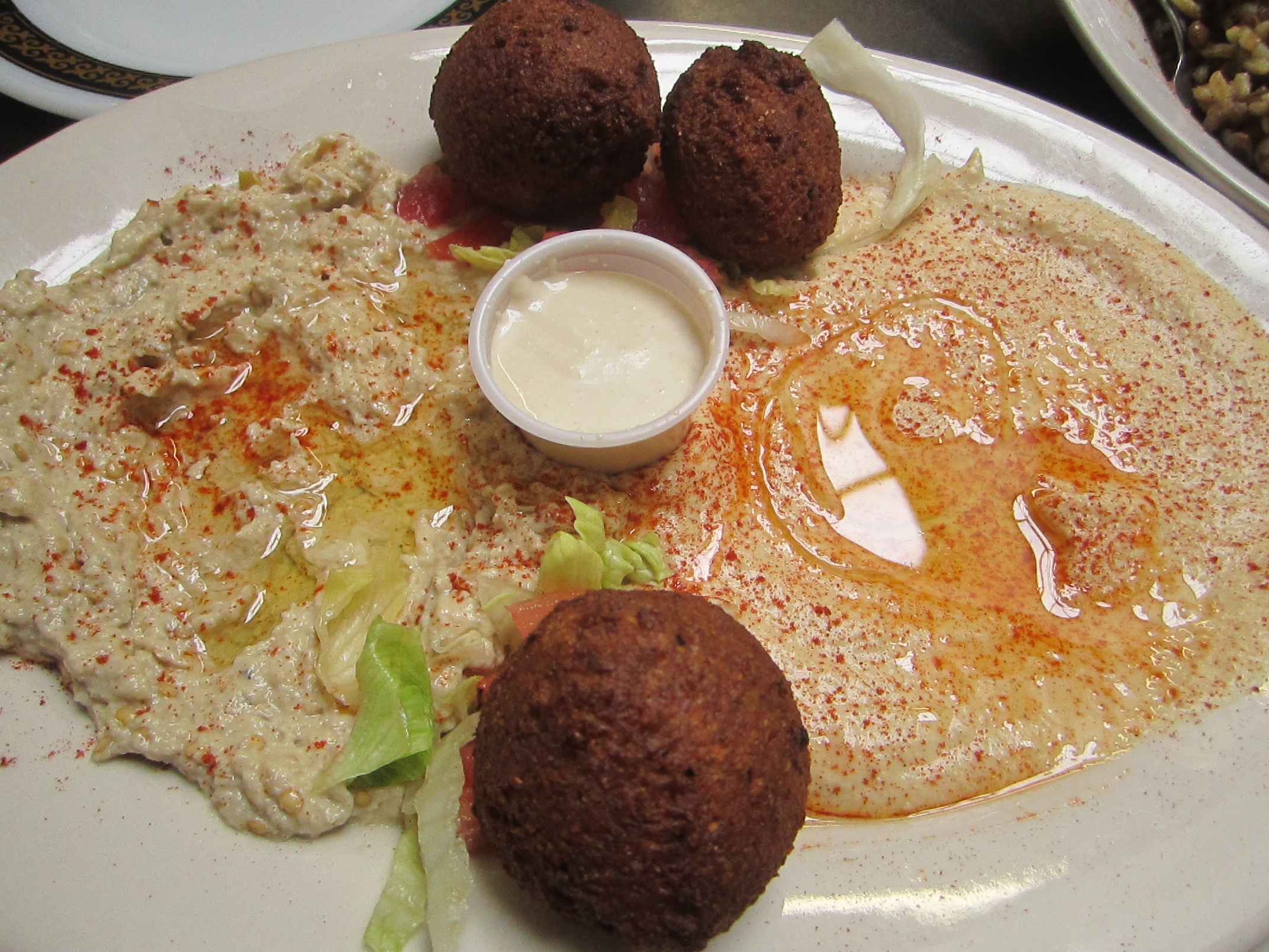 Entree Sampler: Falafel, baba ghanouj, and hummus platter