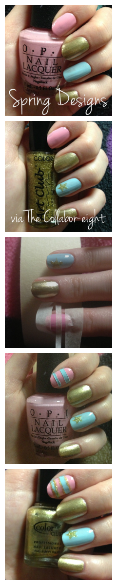 I found this manicure on Pinterest and absolutely fell in love with it. Super cute, right? I had the colors I saw in the photo, I knew how to create the designs, I was good to go. All I would change was switch the star to my ring finger. Except it didn’t come out as good as I planned. Here’s what I used to create the look: