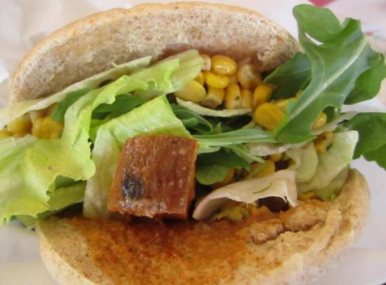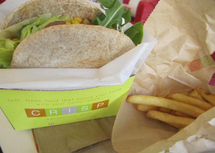 Crisp Africa: falafel, sweet potato, veggies in peanut sauce in pita