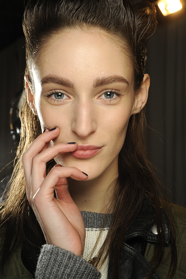 nars_3.1_phillip_lim_aw14_beauty_look_5Amped-up natural beauty with a kick of exaggerated edge was the beauty look that accompanied 3.1 Phillip Lim‘s graphic and geomerical Fall/Winter 2014 collection at New York Fashion Week. “It’s time to ‘rock the casbah’ this fall. A bold, angled brow, clean eyelids and slightly sculpted cheeks give a bit of new wave punk inspiration,” lead NARS artist Francelle Daly said of the look.